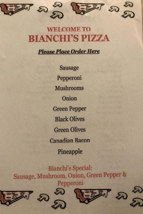 Bianchis Pizza Downtown Menu